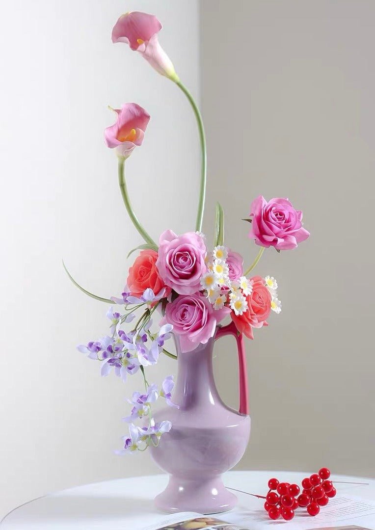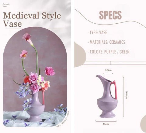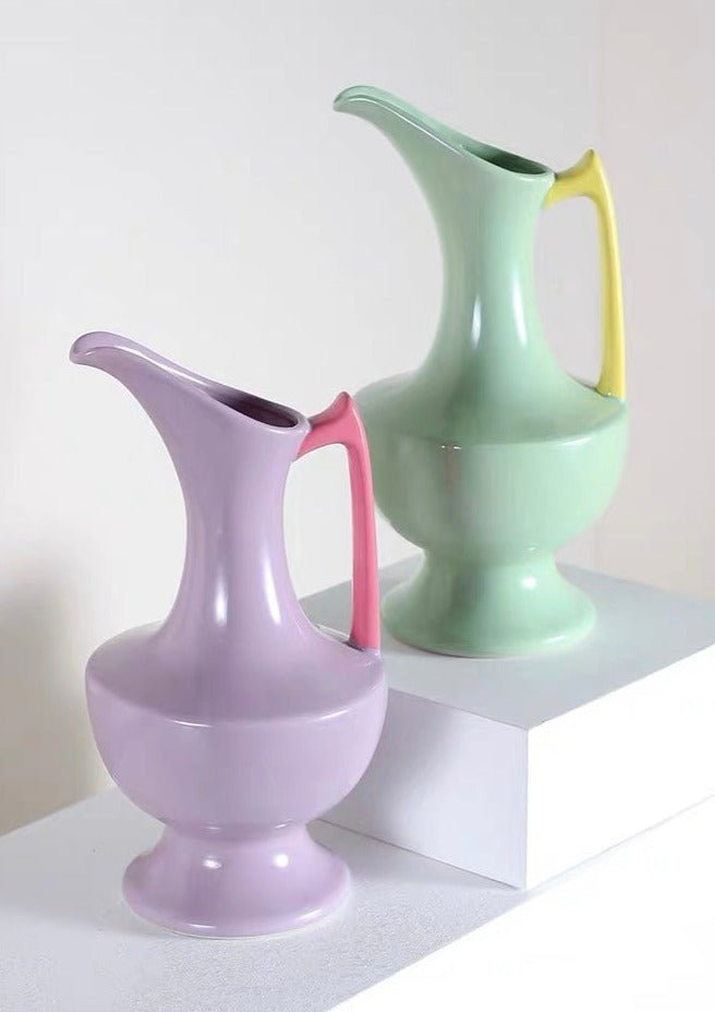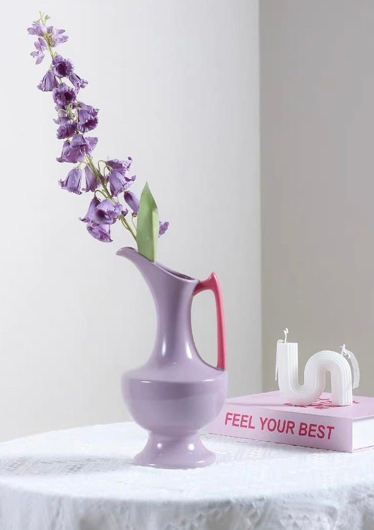 Blending medieval artistry with a modern aesthetic, this tall handmade ceramic flower vase is crafted from the finest clay and finished with a smooth glaze in vibrant dopamine-inspired pastel hues.