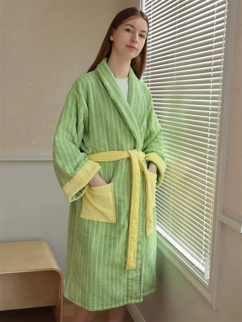 Ultra Soft Stripe Bathrobe - 100% Organic Long-stapled Cotton